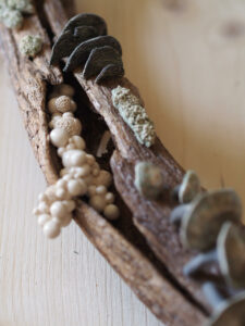Sa pratique s’enracine dans la nature avec force et fragilité. Elle puise son inspiration dans l’art primitif.